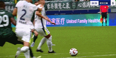 第17分钟,国安错失良机,张玉宁近距离头球攻门偏出底线。